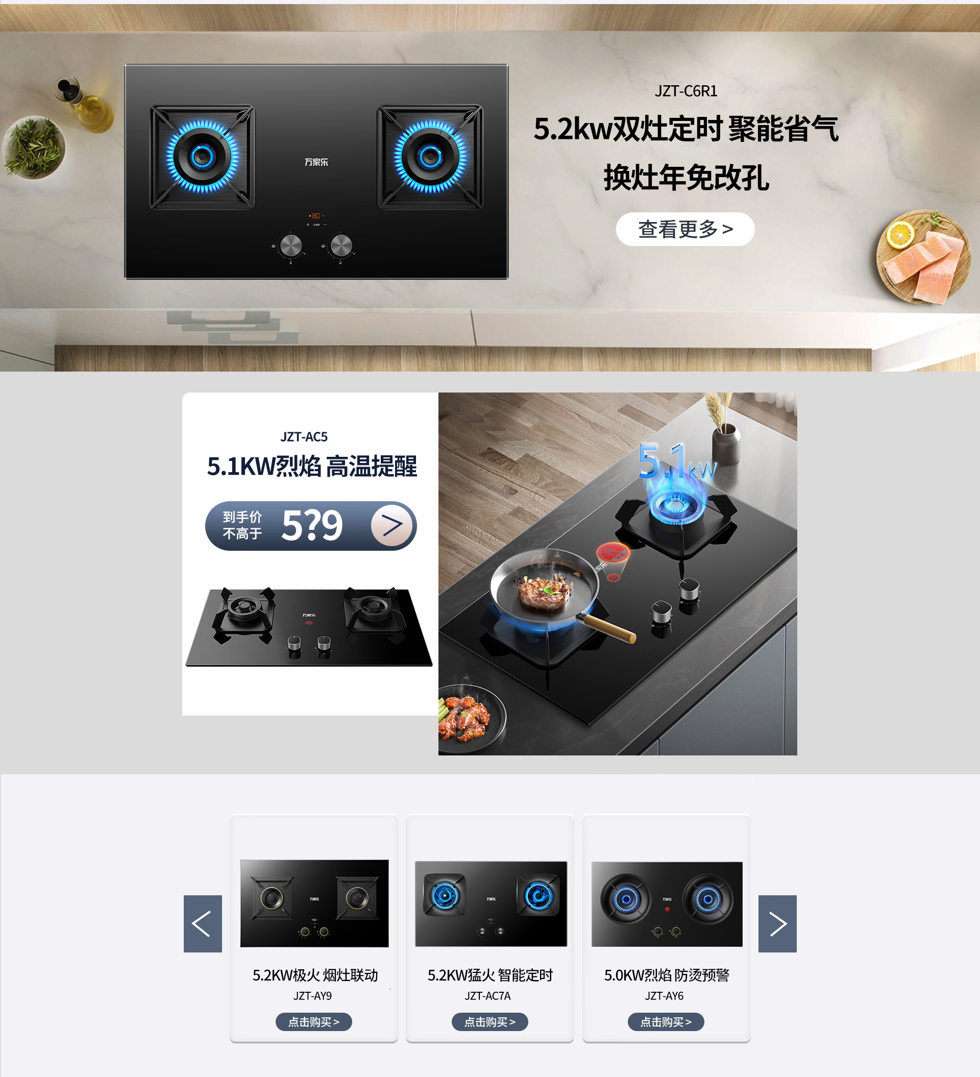 万家乐燃气灶 5.2kW大火力灶猛火灶可适配开孔全进风燃气灶 家用不锈钢台嵌两用天然气灶具JZT-C4R1(G)一级能效节能5.2kW大火力 多重安防