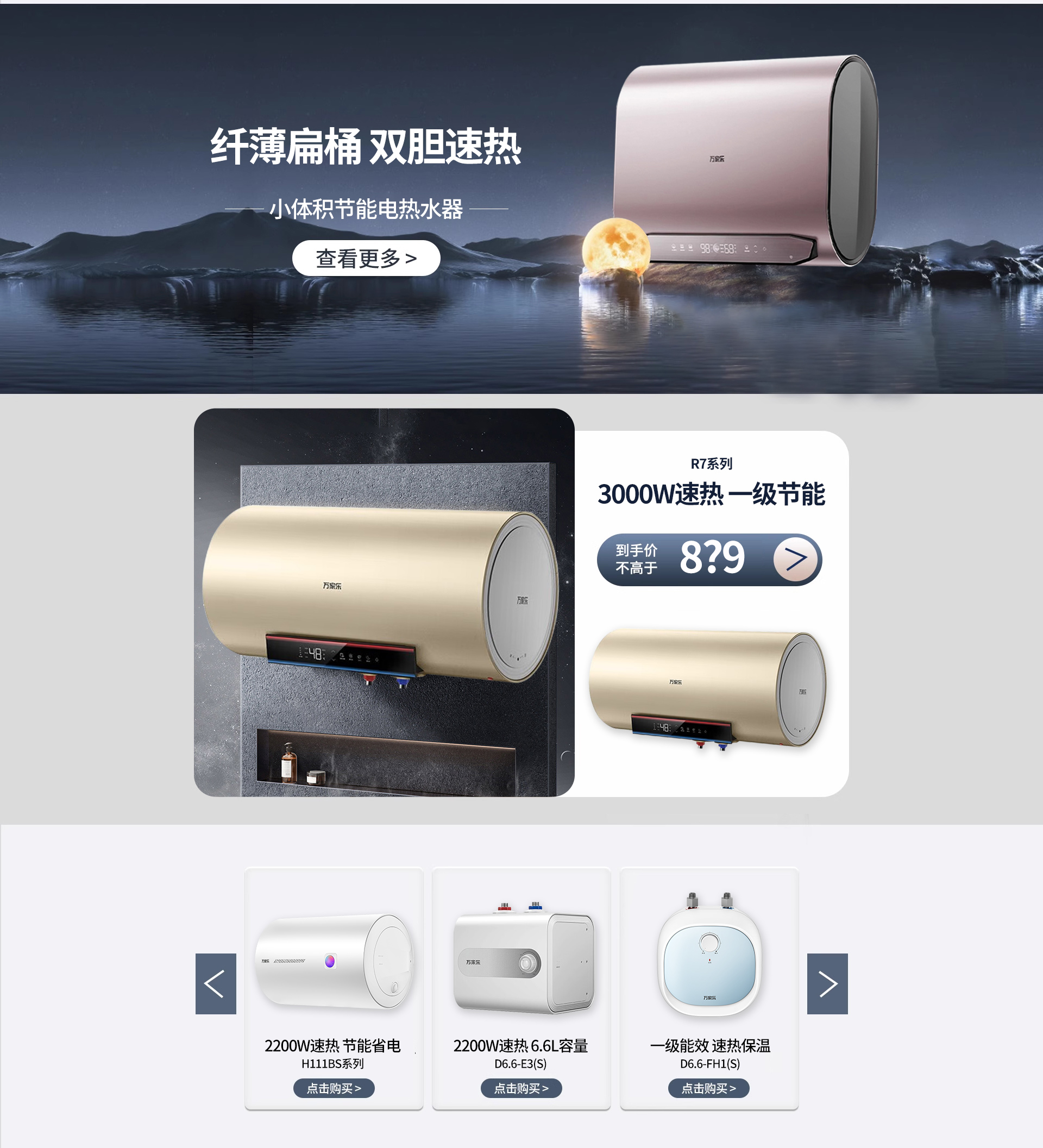 万家乐[节能大师E3]一级能效 7倍大水量 安全防漏电 上出水6.6升家用储水式电热水器6.6升大容量 一级能效 7倍大水量 安全防漏电